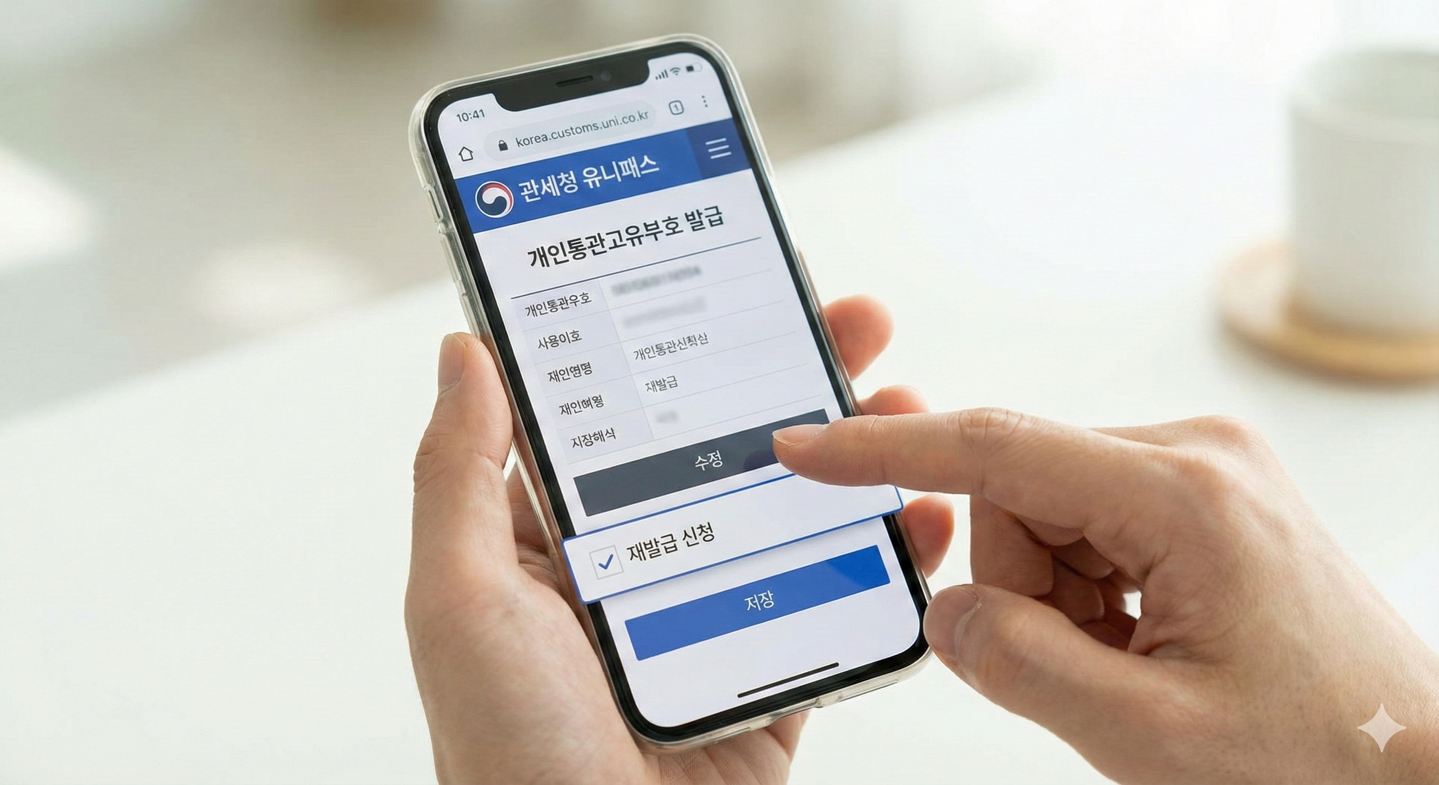 개인통관고유부호 재발급 체크 후 저장만 누르면 기존 번호는 즉시 무효가 되고